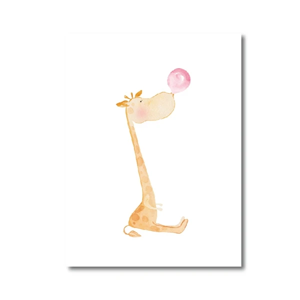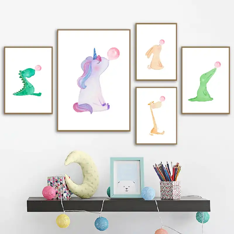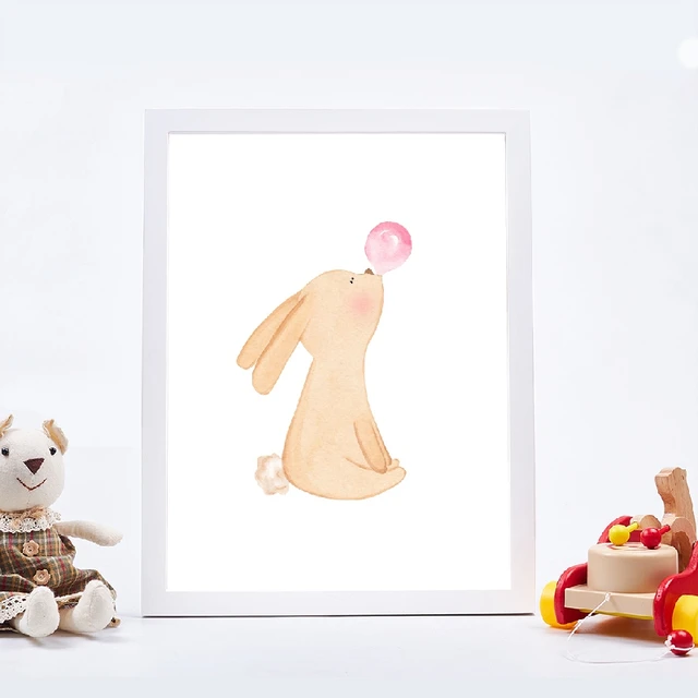 Watercolor Animals Blowing Bubble Gum Nordic Posters And Prints Bunny Giraffe Unicorn Nursery Wall Art Decor Canvas Painting Painting Calligraphy Aliexpress